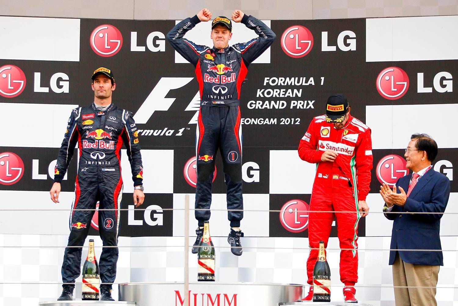 Qual tigre asiático, Vettel ganhou as 3 corridas disputadas no Oriente e passa para o comando do campeonao a 4 corridas do final de época. Em Yengoam o domínio Red Bul foi total. Alonso minimizou ao máximo os estragos.