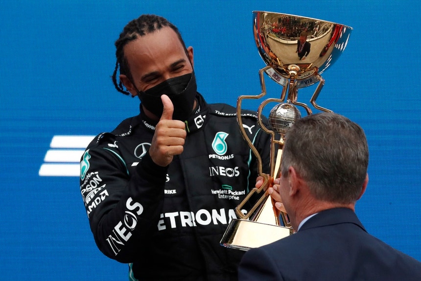 O piloto britânico bateu o holandês Max Verstappen (Red Bull), que partiu de último, por 53,289 segundos, e o espanhol Carlos Sainz (Ferrari), por 1.02,475 minutos.