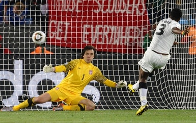 74' - Gyan faz a bola passar por cima da trave.