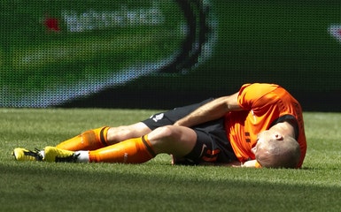 Robben lesionou-se na coxa esquerda na fase final do jogo particular de sábado com a Hungria (6-1), em Amesterdão, chegando-se a duvidar se estaria em condições de participar no Mundial.