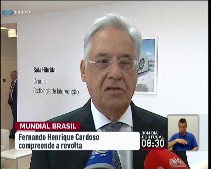 O antigo Presidente do Brasil, Fernando Henrique Cardoso, diz que compreende a revolta do povo nas ruas. De visita a Portugal, o antigo Chefe de Estado disse que receia incidentes durante o Mundial.