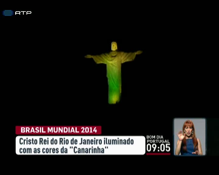 A estátua do Cristo Redentor, no Rio de Janeiro, já está vestida a preceito para o Mundial. Um dos mais emblemáticos monumentos do Brasil está enfeitado com as cores da seleção canarinha e assim deve ficar até o final do campeonato do mundo de futebol.