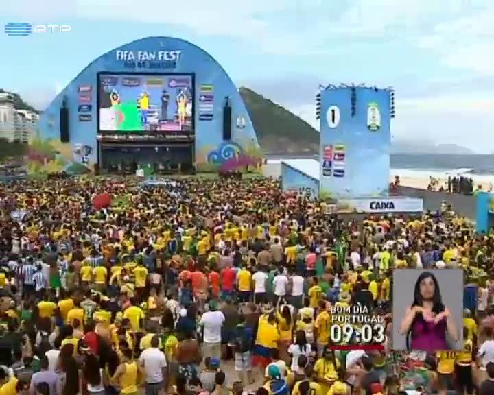 No Rio de Janeiro a estreia do Brasil foi seguida por milhares de pessoas no areal de Copacabana , numa festa apoiada pela FIFA . Cristiano Ronaldo também foi lembrado. Adeptos dizem esperar uma final entre o Brasil e Portugal.