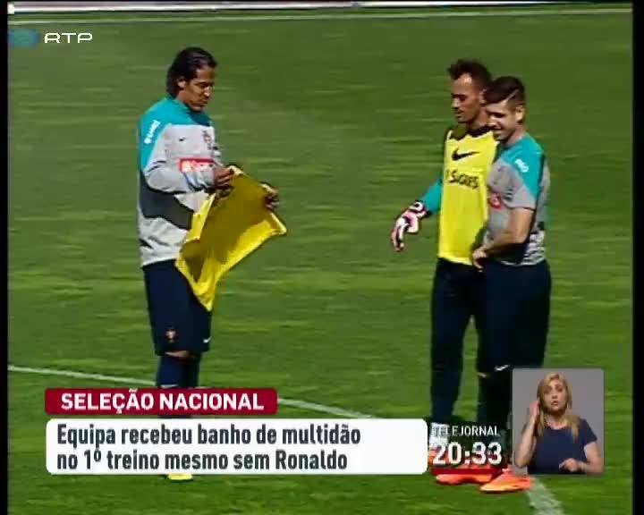 Arrancou a fase de preparação da seleção de Portugal com vista ao Mundial do Brasil com um treino, no Estoril, presenciado por 2 mil adeptos, e que contou com um jogo de 10 contra 10 para deliciar os espetadores e onde não estiveram Rui Patrício (engripado), Cristiano Ronaldo, Fábio Coentrão e Pepe que jogam sábado a final da Champions pelo Real Madrid.