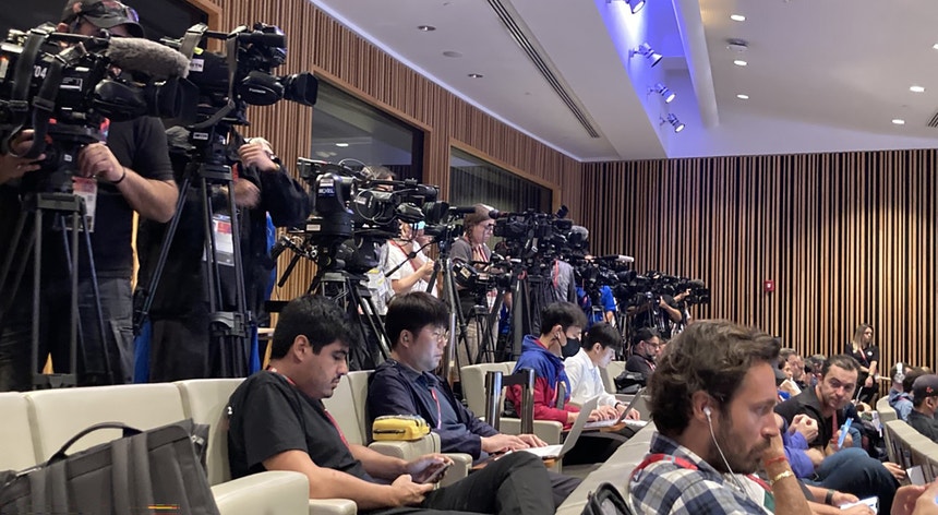 É outra das grandes novidades deste concentrado campeonato do mundo. Todas as conferências de imprensa de antevisão dos jogos acontecem no centro de imprensa que está localizado no Centro de Convenções do Qatar, um gigantesco edifício onde cabem várias salas de imprensa e também o centro de emissão dos sinais de rádio e televisão deste evento. É aqui, por exemplo, que a RTP tem o seu escritório e a sua central técnica e é a partir daqui que recebe e envia todos os sinais dos jogos que são vistos em Portugal, nos vários canais que detém os direitos de transmissão. Aqui trabalham diariamente milhares de jornalistas, técnicos e funcionários locais.