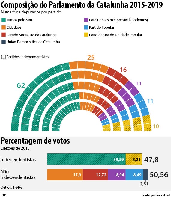 Apesar de conquistarem menos assentos, os partidos que se opõem à independência catalã conquistaram mais votos – 50,56 por cento dos sufrágios. A leitura é clara: os independentistas ganharam a eleição mas perderam o “referendo”. No número de deputados e no de votos, os números apontam fundamentalmente para uma nação dividida quanto ao seu futuro.