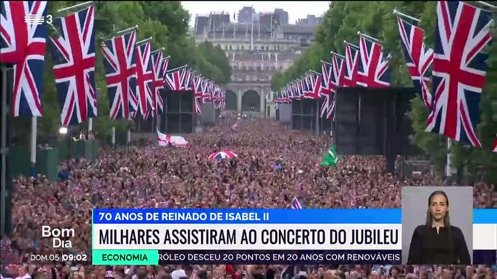 Milhares de pessoas assistiram, em Londres, ao Concerto do Jubileu. O espetáculo durou perto de duas horas e decorreu em frente ao Palácio de Buckingham. A Rainha Isabel II não esteve no local, mas a família real marcou presença no evento.