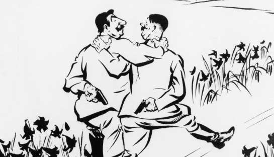 com Estaline em pano de fundo; mas o aperto de mão que foi fotografado