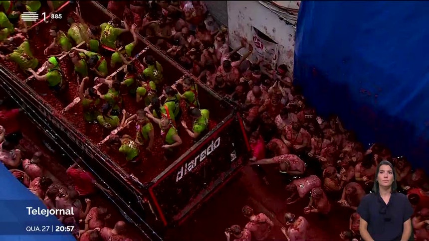 A Tomatina assinalou 80 anos. A festa juntou milhares de pessoas em Bunhol, em Espanha. Esta é a maior batalha do mundo em que os tomates são usados como uma arma. Este ano, 120 mil quilos de tomates vieram de Badajoz .