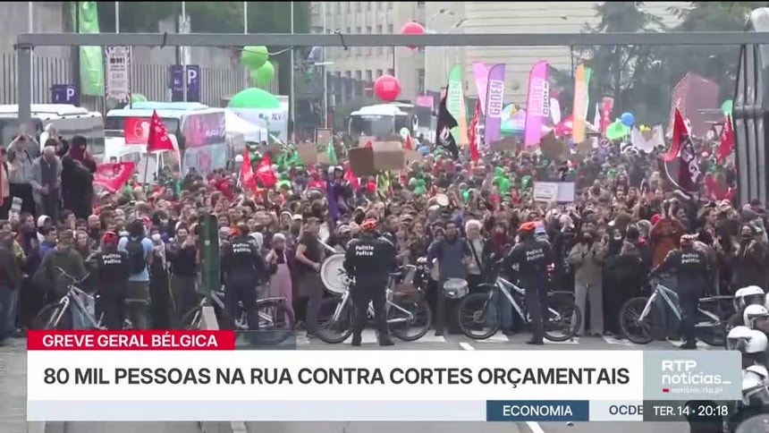 Mais de 80 mil manifestantes saíram à rua em Bruxelas, na Bélgica, em dia de greve geral no país. O protesto subiu de tom e houve confrontos com as forças de segurança.