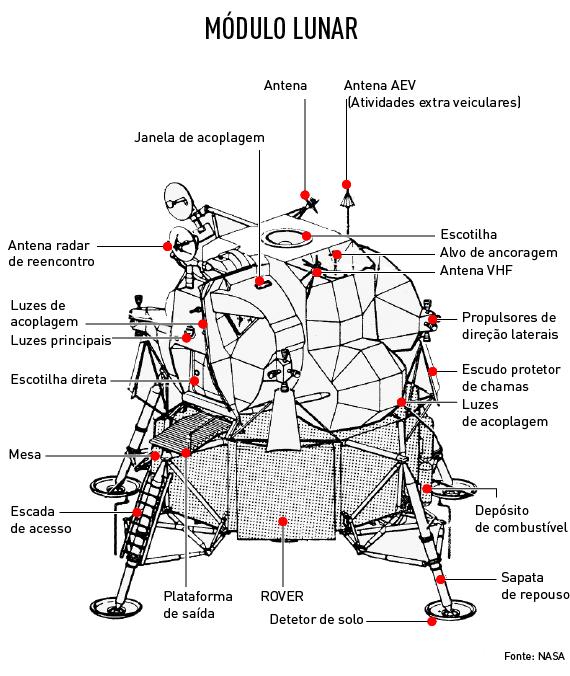 Para viajar até à Lua, como na maioria das viagens realizadas pelo Homem, era necessário um veículo de transporte. A NASA, com base nos programas do início da década de 60 (Gemini e Mercury) que levaram os primeiros astronautas até órbita, concebeu a base para o Módulo de Serviço e Controlo (SMC) e do Módulo Lunar (ML) para a projeto Apollo.