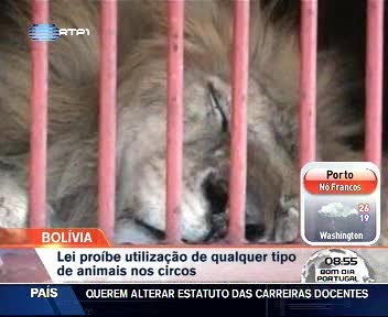 Na Bolívia, 5 leões e um macaco estão de abalada para os Estados Unidos, depois das autoridades proibirem a utilização de animais nos circos. Os animais vão para uma reserva natural na Califórnia. Este é o primeiro grupo mas outros se seguirão em breve.