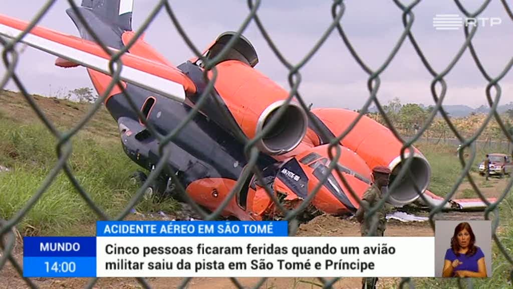 Cinco pessoas ficaram feridas quando um avião russo saiu da pista no aeroporto de São Tomé. O aparelho de transporte militar fazia escala e preparava-se para levantar voo com destino ao Gana.
