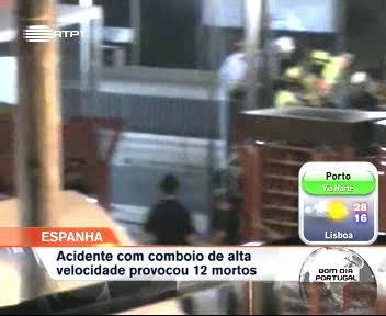 Um acidente com um comboio de alta velocidade em Espanha provocou a morte a 12 pessoas. Há ainda a registar 17 feridos, três dos quais em estado grave. O grupo de jovens foi colhido pelo comboio quando atravessava a linha em vez de utilizar a passagem inferior. O acidente aconteceu perto de Barcelona.