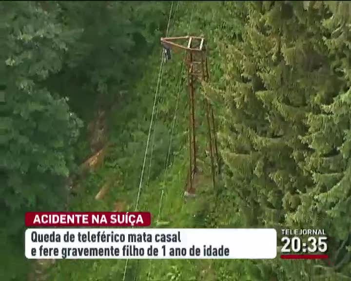 Um acidente com um teleférico na Suiça provocou a morte de um casal e ferimentos graves no filho, um bebé de apenas um ano de idade. O teleférico fez 900 metros do percurso, numa localidade no centro da Suiça, quando caiu a pique num desfiladeiro. Trinta metros de queda provocaram a morte imediata ao casal e ferimentos graves no bebé de um ano. A criança está internada e apresenta prognóstico reservado. Não se conhecem as causas do acidente, mas estes teleféricos são próprios para o transporte de mantimentos e não de pessoas. O excesso de peso poderá ter provocado a queda.