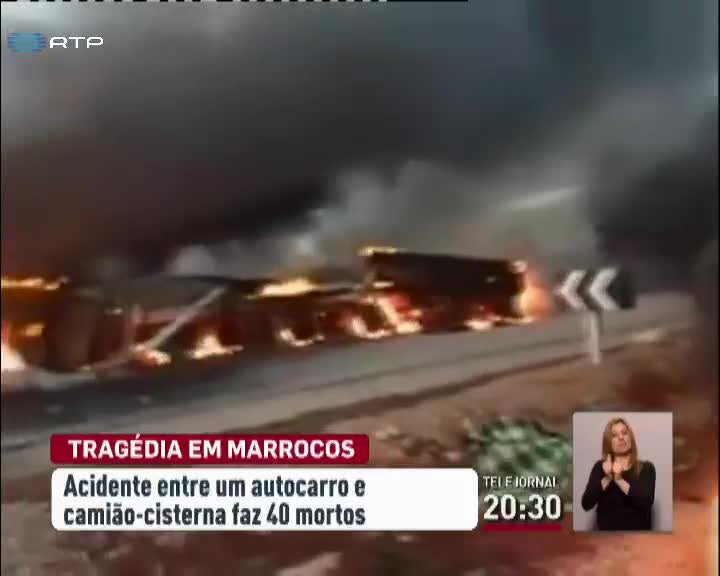 Um autocarro cheio de crianças colidiu com um camião-cisterna em Marrocos. O acidente fez pelo menos 40 mortos, a maioria crianças. O autocarro regressava de um campeonato de desporto infantil. Para além das vítimas mortais, o acidente seguido de incêndio provocou ainda nove feridos, dois deles em estado muito grave. As autoridades marroquinas já disseram que o autocarro que transportava os jovens atletas cumpria todas as regras de segurança.