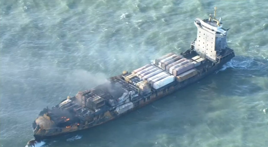 Durante as operações de busca foram resgatadas 36 pessoas. Na manhã desta quarta-feira, o cargueiro ainda estava em chamas.