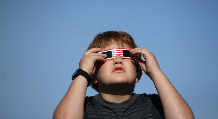 Foram distribuídos óculos especiais a quem passava junto ao Museu do Ar e do Espaço, em Washington, e queira olhar para cima. O National Mall, a avenida que se estende à frente do Capitólio, encheu-se de miúdos e graúdos a desfrutar do fenómeno.
