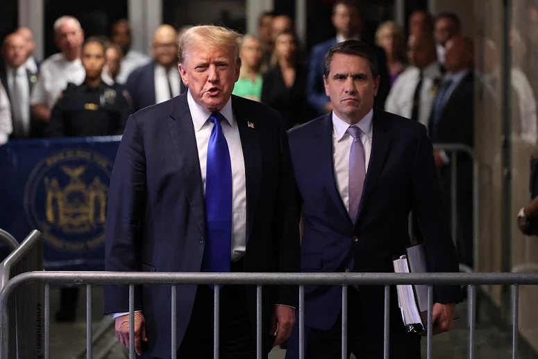 O Ministério Público de Nova Iorque alegou que o 45.º presidente dos Estados Unidos (2017-2021) era culpado de falsificar os documentos contabilísticos do seu grupo de empresas, a Organização Trump, para ocultar um pagamento à atriz de filmes pornográficos Stormy Daniels para evitar um escândalo sexual, no final da campanha presidencial de 2016.
