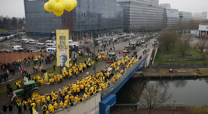 Centenas de agricultores da União Europeia concentraram-se nas imediações da sede do Parlamento Europeu, em Estrasburgo, França, para pressionar os eurodeputados na véspera da votação de um pedido para submeter à análise do Tribunal Europeu de Justiça aspetos do acordo UE-Mercosul. A questão tem potencial para travar o processo de ratificação do tratado celebrado no sábado entre os blocos europeu e sul-americano, que necessita da aprovação do PE para entrar em vigor.