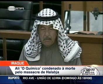 Ali, "O químico" foi condenado à morte. O braço direito de Saddam Hussein ouviu a sentença de um tribunal iraquiano pelo assassinato de mais de 5 mil curdos. O crime ocorreu em 1988, quando Ali ordenou um ataque de gás à cidade de Halabja. Ali, "O Químico" vai ser enforcado.
