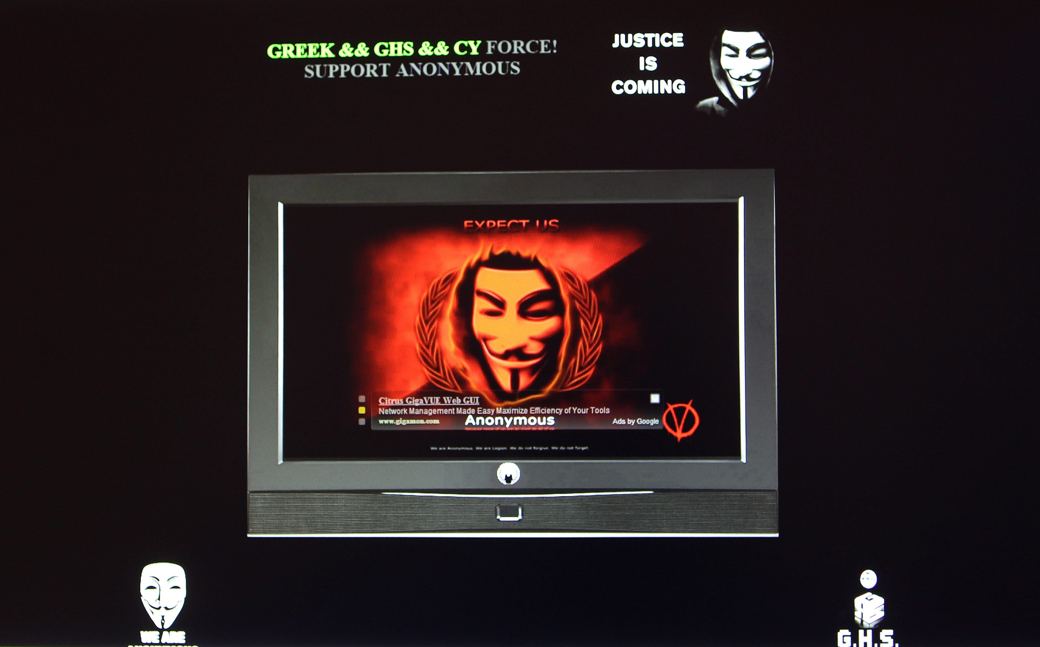 Já esta manhã, piratas atacaram o ministério grego da Justiça, publicando no site da instituição, durante duas horas, um vídeo de ativistas que afirmavam ser membros cipriotas e gregos do grupo internacional Anonymous