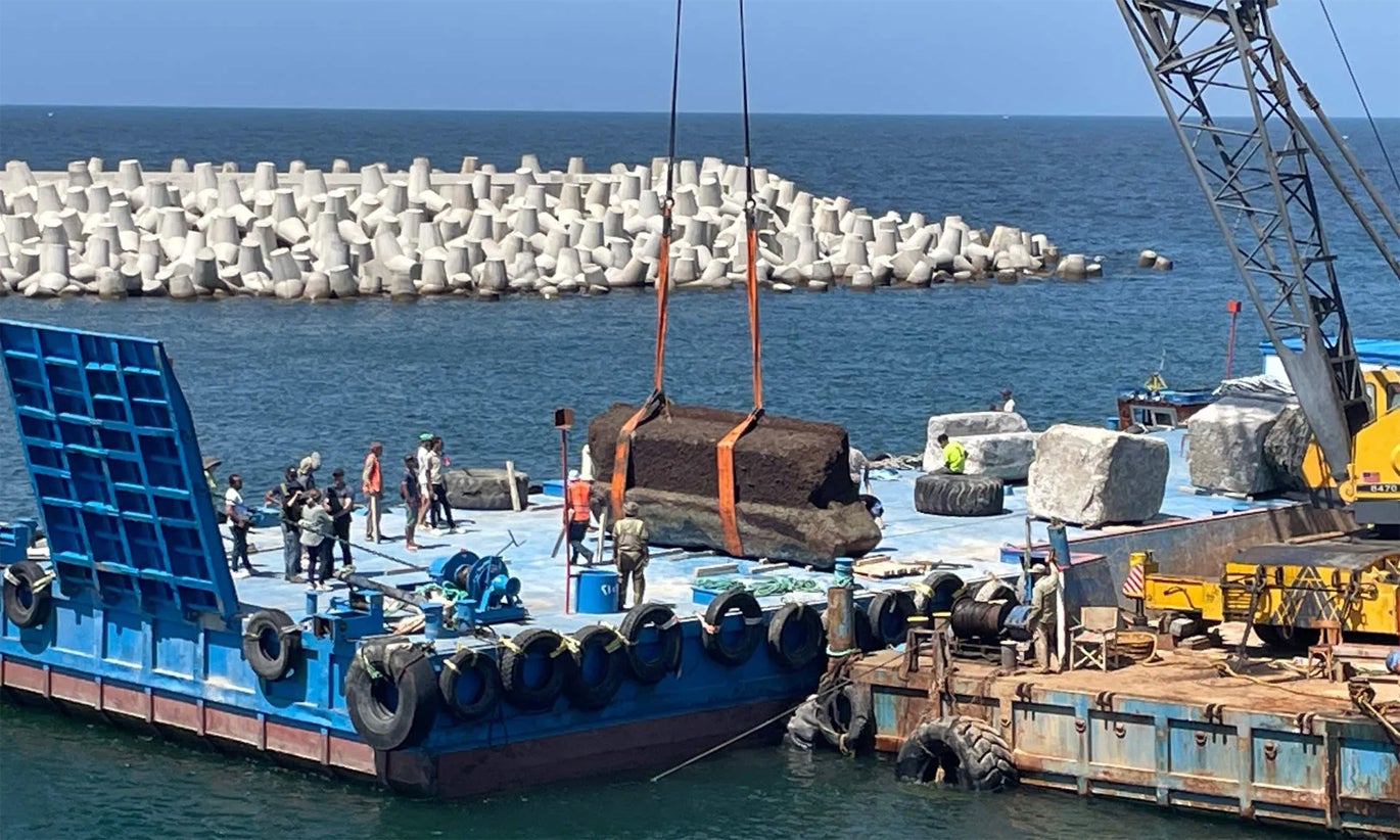 Antigo Farol de Alexandria. Recuperados 22 blocos monumentais de pedra das águas egípcias