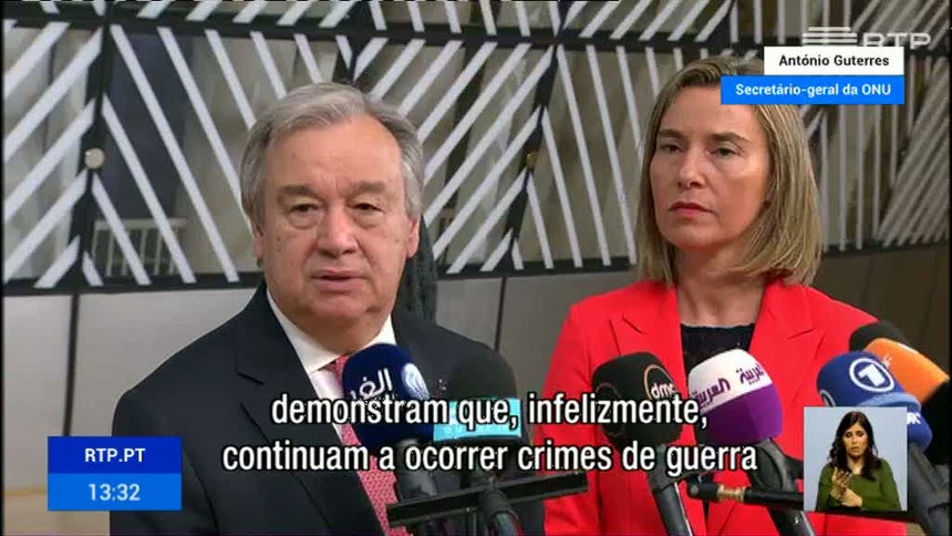 António Guterres diz que as imagens que chegam da Síria mostram que os crimes de guerra não pararam no território. O secretário-geral das Nações Unidas participa hoje, em Bruxelas, numa conferência de alto nível sobre o futuro do país, onde não faltaram os apelos ao fim do conflito e as acusações ao regime de Bashar al-Assad.