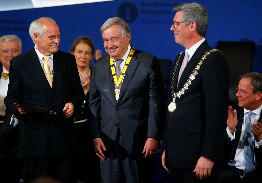 O secretário-geral das Nações Unidas foi o primeiro português a ser galardoado com a distinção que premeia desde 1950 personalidades que tenham contribuído para a unidade do continente europeu.