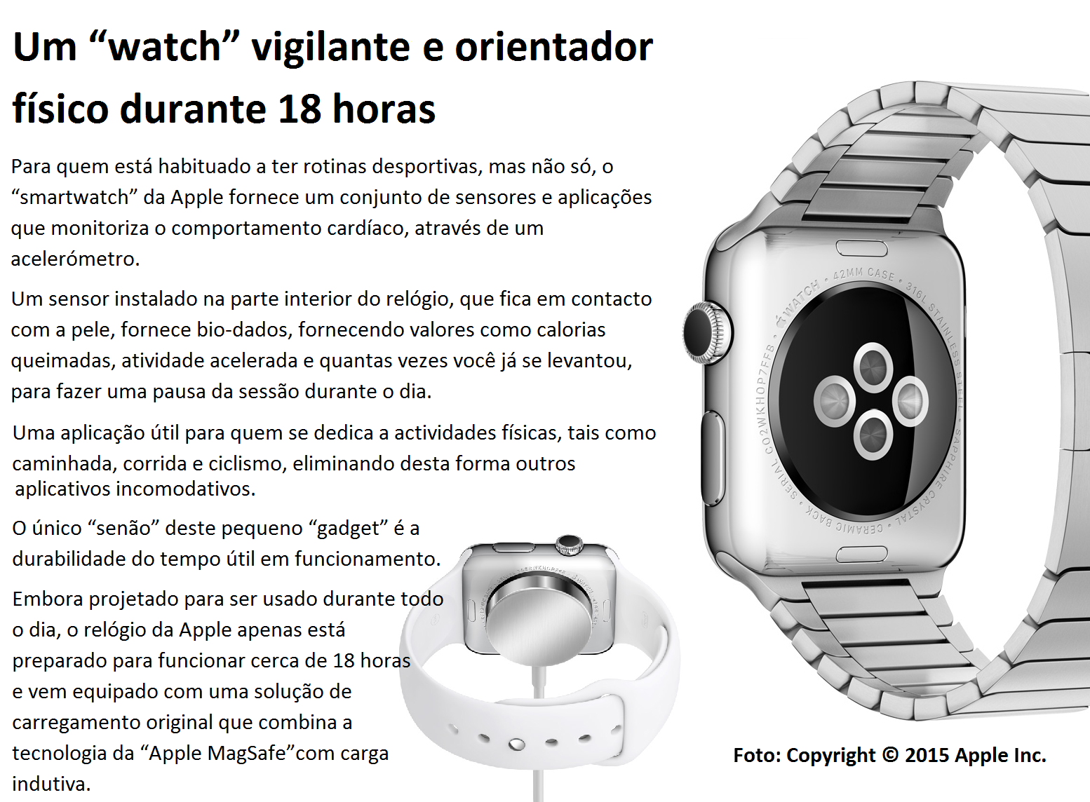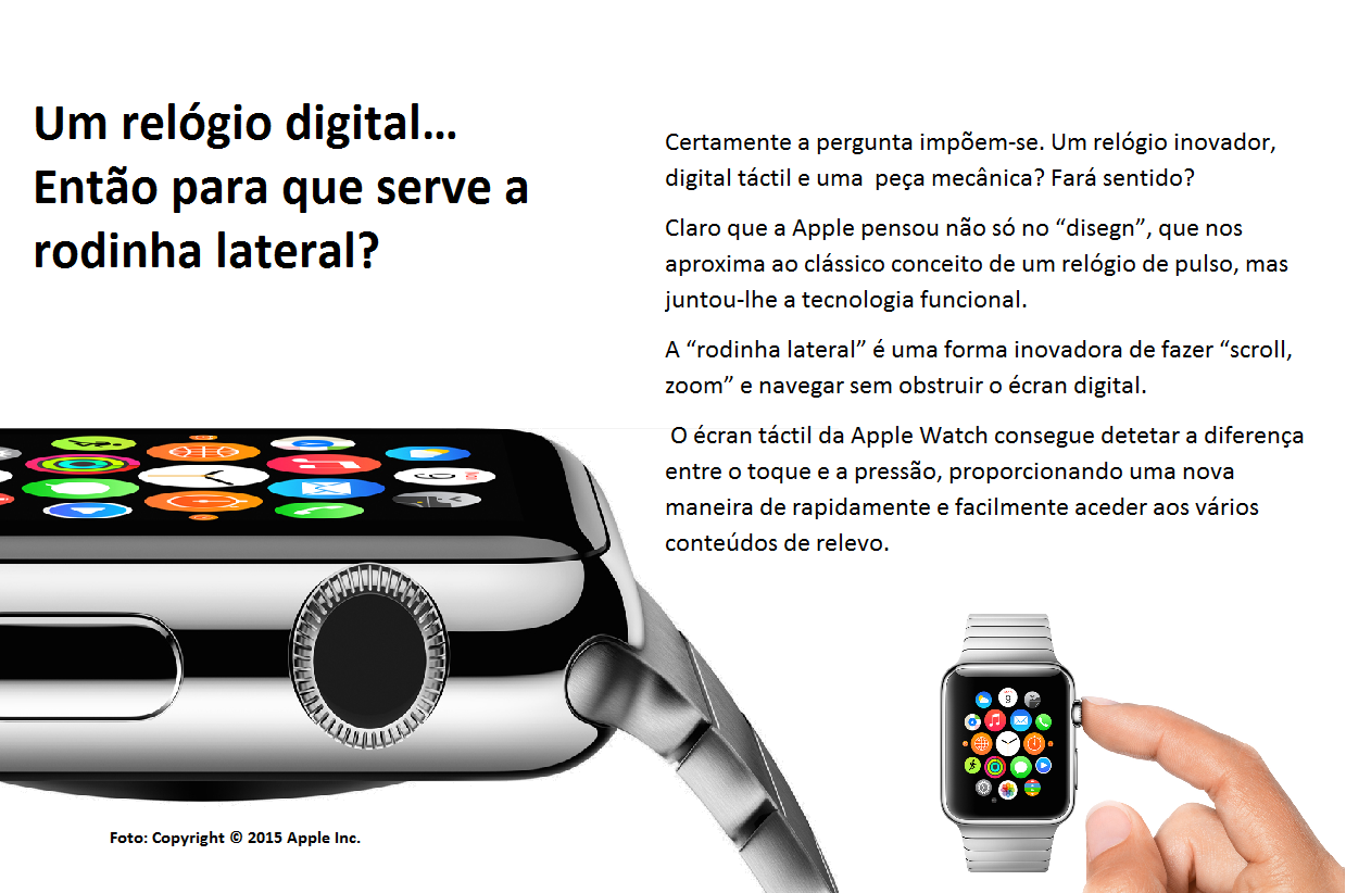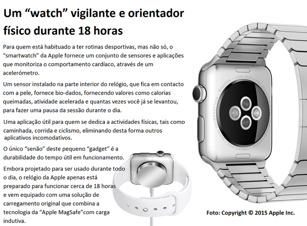De alertar que este "Apple Watch" necessita sempre de um emparelhamento com um iPhone 5 / 5C / 5S, iPhone 6 ou iPhone 6 Plus, com um sistema operativo iOS 8.2, já disponivel.