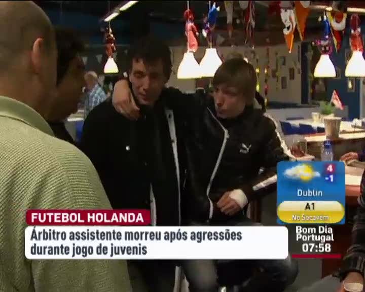 Na Holanda um árbitro auxiliar morreu depois de ser agredido por jogadores no final de um jogo de futebol. O árbitro assistente, de 41 anos, desfaleceu em campo depois de ter sido esmurrado e pontapeado na cabeça por três jogadores com 15 e 16 anos.