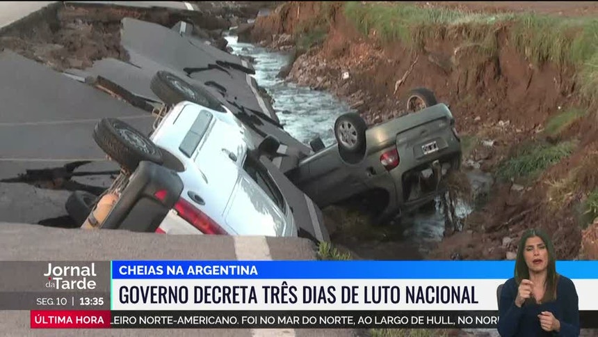 A Argentina decretou três dias de luto nacional pela morte de, pelo menos, dezasseis pessoas durante as cheias que afetaram a cidade de Bahía Blanca, no sudoeste do país. Há ainda dezenas desaparecidos, entre eles duas irmãs de 1 e 4 anos.