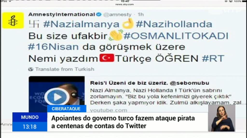 Em dia de eleições na Holanda há uma ataque informático em larga escala no Twitter. O autor é desconhecido, mas centenas de contas foram pirateadas por pessoas que se dizem apoiantes do Governo Turco. Uma mensagem que volta a chamar nazis à Alemanha e a Holanda.