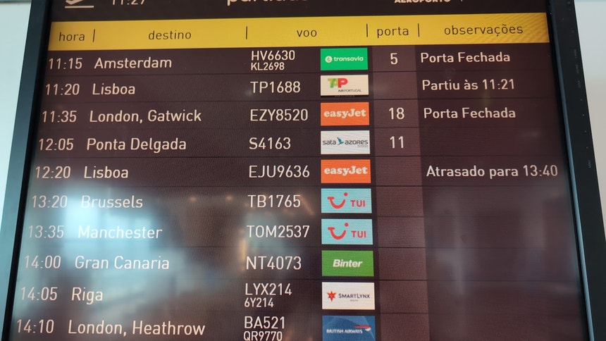 Foram cancelados e atrasados centenas de voos durante todo o dia. Portugal também foi afetado.