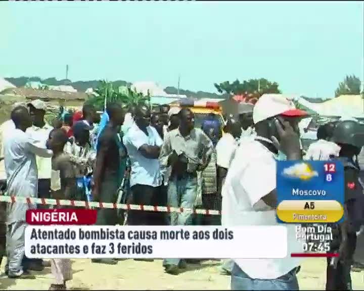 No norte da Nigéria, um atentado bombista junto a um colégio islâmico causou a morte aos dois atacantes. Há pelo menos três feridos confirmados. As autoridades dizem que a escola foi avisada antes da explosão da bomba para que o local fosse evacuado. Depois da explosão, houve uma troca de tiros e as forças de segurança abateram os atacantes. O ataque não foi ainda reivindicado.