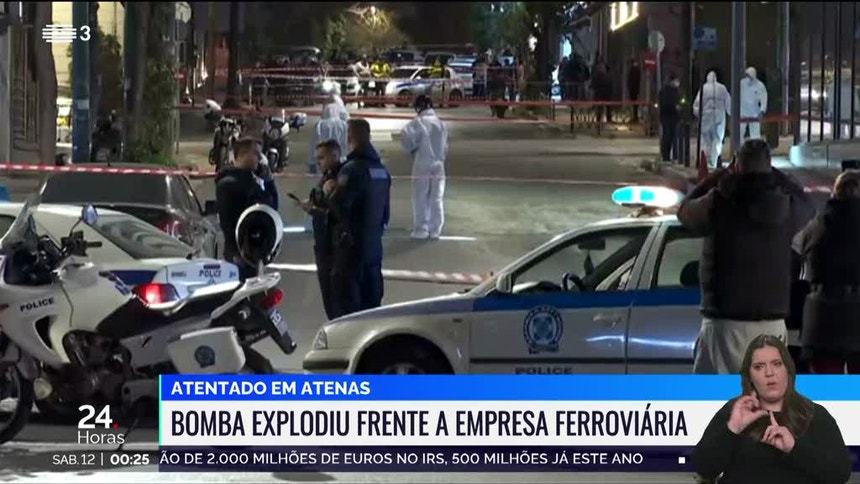 Uma bomba explodiu, esta noite, no centro de Atenas, na Grécia, em frente à sede da companhia de comboios. Não há vítimas a registar.