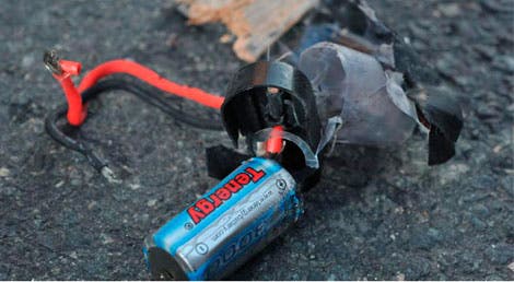 Os agentes identificaram ainda um engenho explosivo incluindo um contentor de metal, fios elétricos, os restos de uma bateria Tenergy e uma pequena placa de circuitos.