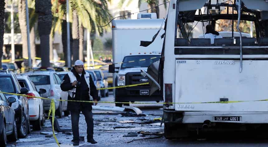 Um primeiro bombista suicida fez-se explodir junto a uma patrulha da polícia, na rua Charles de Gaulle no centro da capital. Um polícia morreu, e pelo menos outro e mais três civis ficaram feridos, revelou o Ministério do Interior tunisino.