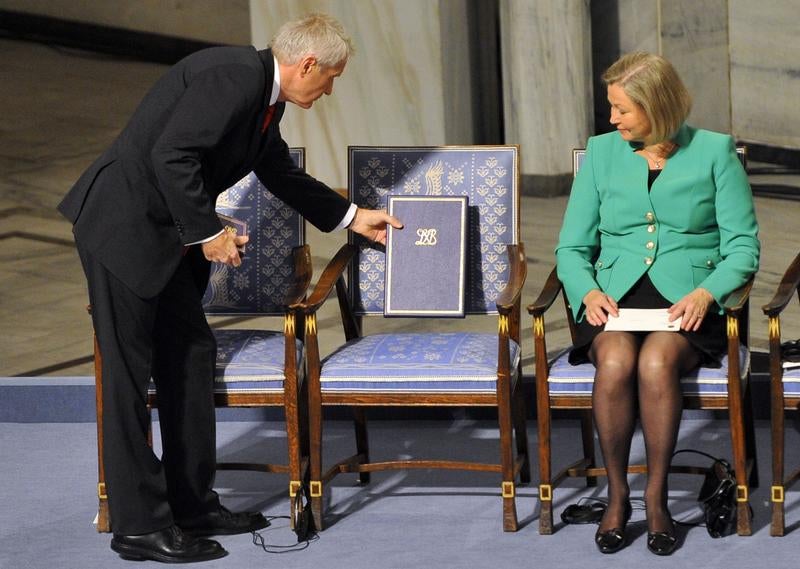 Informado pelos guardas prisionais que recebera o Nobel da Paz, Liu Xiaobo dedicou o prémio “às vítimas do massacre de Tiananmen”. Foi impedido de participar na cerimónia de entrega do Nobel, Liu foi representado por uma cadeira vazia, mais um gesto visto como uma afronta ao Governo chinês.
