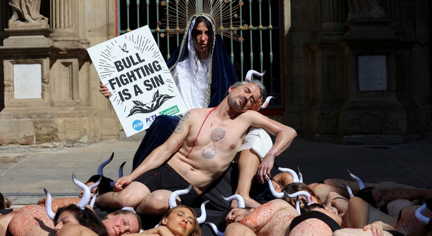 Em Espanha, um grupo de ativistas protestou contra as touradas durante as festividades de San Fermin, em Pamplona. Foi um protesto da PETA, a Organização para o Tratamento Ético dos Animais.