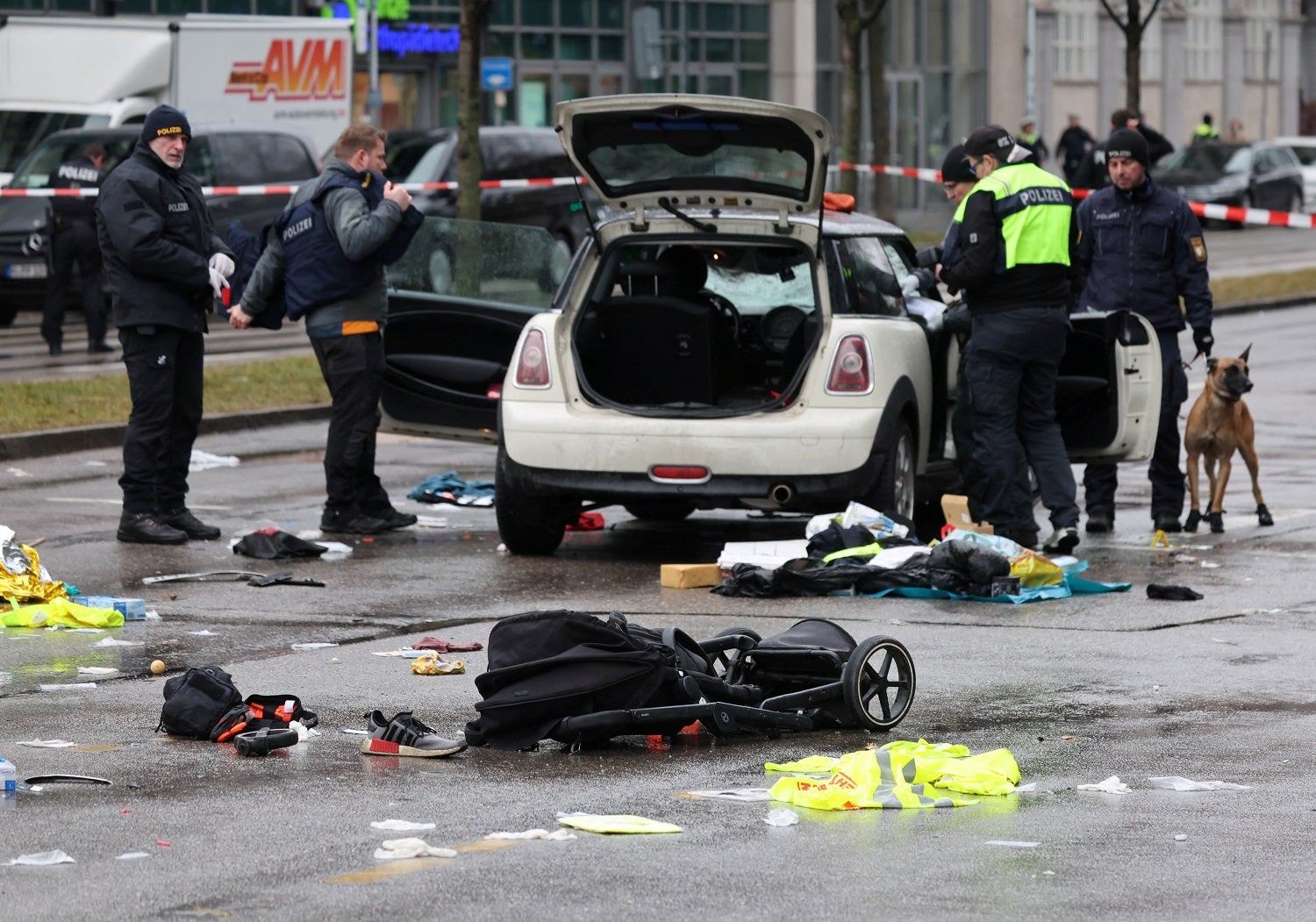 A polícia parou o Mini Cooper de cor creme, tendo disparado pelo menos um tiro antes de deter o condutor. Mais tarde, a polícia de Munique revelou que o alegado autor do atropelamento tem 24 anos, é afegão e pediu asilo à Alemanha.