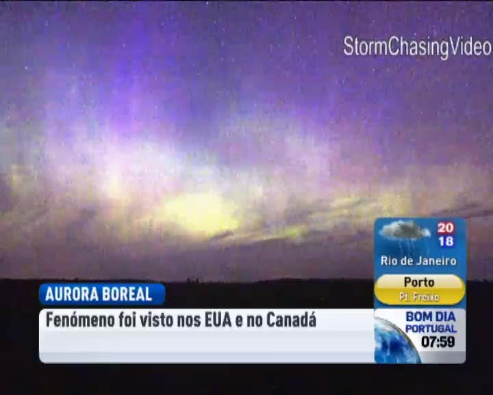 Nos Estados Unidos assistiu-se ontem a uma aurora boreal. As imagens mostram a aurora boreal por cima do lago Elora, no Minnesota. O fenómeno foi visto no Sul do Canadá e nos estados do Norte dos Estados Unidos. A aurora boreal deveu-se ao choque produzido por grande quantidade de partículas de vento solar no perímetro magnético da terra.