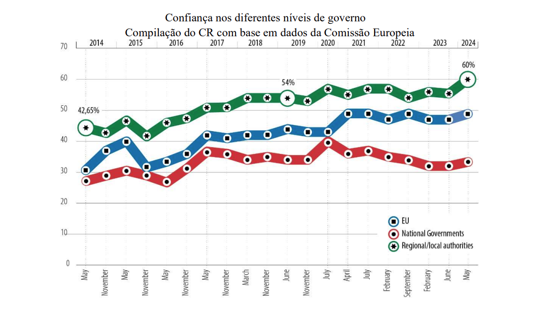 O mais recente barómetro sobre a confiança no poder local mostra que 60 por cento dos cidadãos europeus confiam nos Autarcas. É o valor mais alto de sempre a nível europeu. Em segundo lugar, os cidadãos, depositam a sua confiança nas Instituições Europeias e só depois, em terceiro lugar, no poder central e nos governos dos Estados-membros.