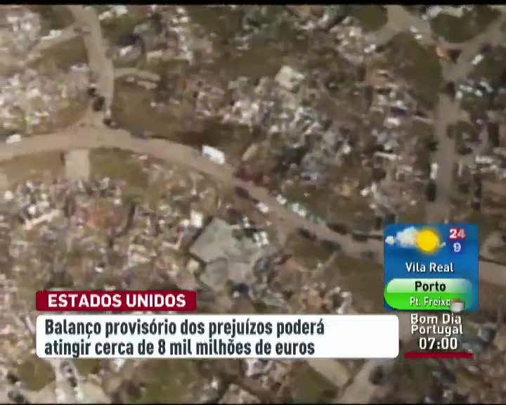 Está concluído um primeiro cálculo dos prejuízos causados pelo tornado de Moore, no Estado norte-americano do Oklahoma. Estará em causa um valor aproximado de oito mil milhões de euros. Dois mil milhões devem ser custeados pelas seguradoras.