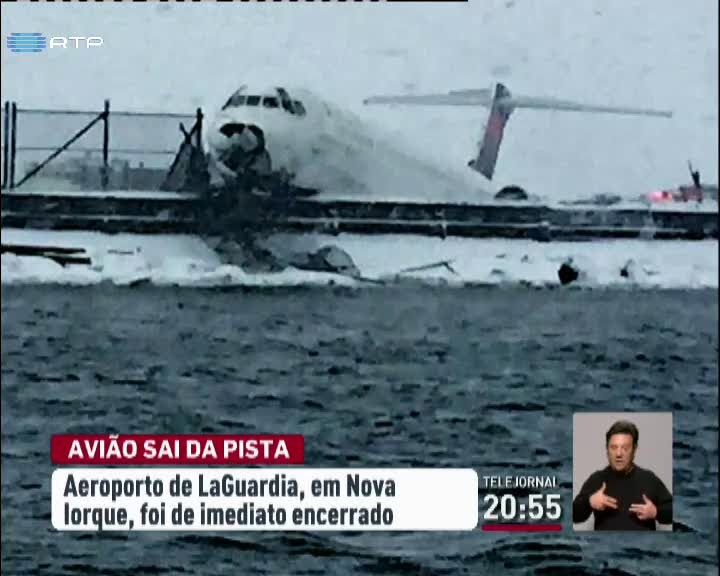 O aeroporto de La Guardia em Nova Iorque esteve encerrado esta quinta-feira. Um avião comercial saiu da pista e bateu na barreira de proteção enquanto tentava aterrar. Um despiste causado pelo gelo e pela neve.
