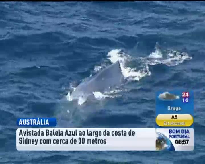 Na Austrália, foi avistada uma baleia azul perto da costa de Sidney, media 30 metros e pesava quase 200 toneladas. A baleia azul é considerado o maior animal do mundo e é muito raro ser avistada. Em Sidney, não se via uma baleia desta espécie há já 20 anos.