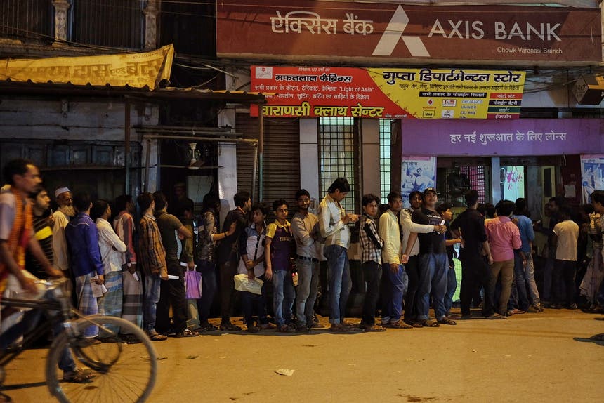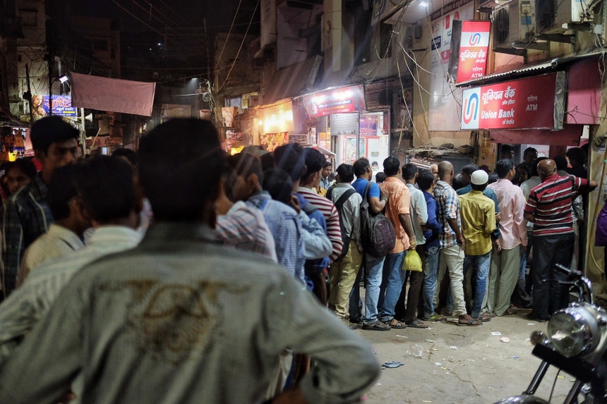 Na Índia a população está preocupada com indisponibilidade de dinheiro fornecido pelos bancos, através das caixas de levantamento automático. O primeiro-ministro indiano anunciou há uns dias que ia retirar de circulação, de um dia para o outro, todas as notas de 500 e mil rupias para combater a corrupção, e deu ordem para não repor as caixas automáticas com notas antigas.