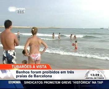 Pelo menos um tubarão foi avistado esta manhã, junto à costa de Barcelona. O que levou a que os banhos estejam proibidos em três praias. O tubarão foi avistado a menos de cem metros da costa por um nadador-salvador e por vários banhistas.