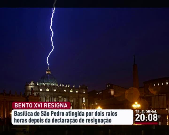De todas as imagens após a resignação do Papa há uma que se destaca pelo insólito e que já está a correr mundo. Horas depois do anúncio de resignação de Bento XVI, a Basílica de São Pedro foi atingida por dois raios. As imagens foram captadas em fotografia e em vídeo. Uma imagem que já está a ser comentada em todo o mundo alguns crentes querem ver nestes raios um sinal dado num dia histórico para a igreja católica.