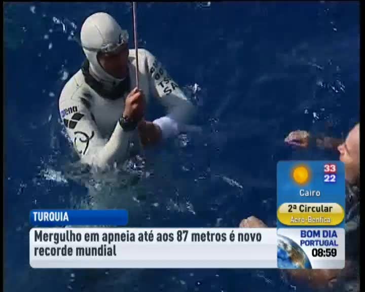 Dois minutos e 28 segundos num mergulho até aos 87 metros de profundidade. O feito foi conseguido por um turco numa cidade costeira da Turquia.